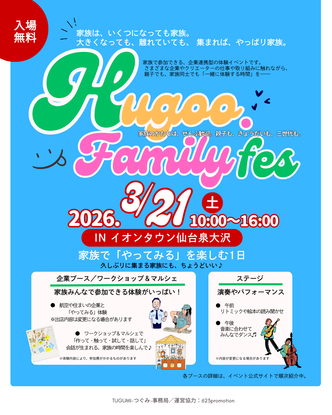 3/21(土)に開催される「Hugoo Family Fes」に出店します!
