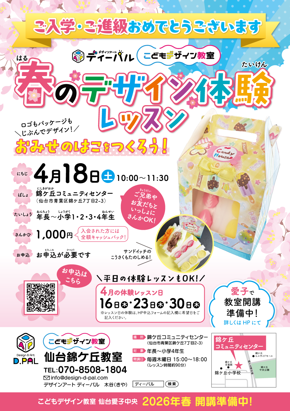 こどもデザイン教室ディーパル錦ケ丘教室では、2026年春の体験レッスンを開催します。