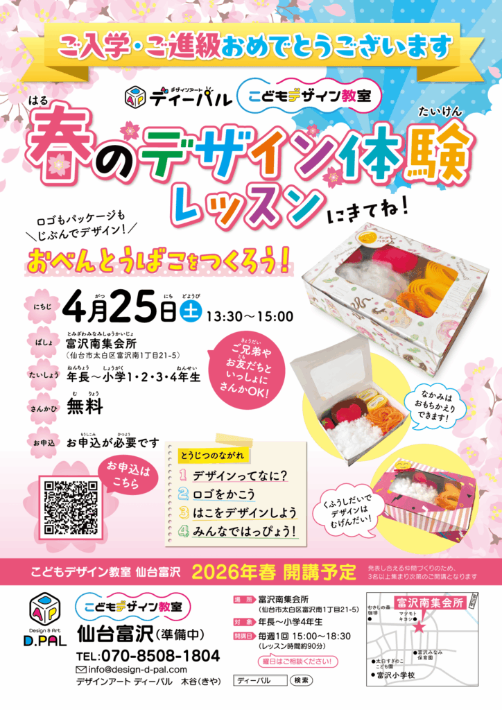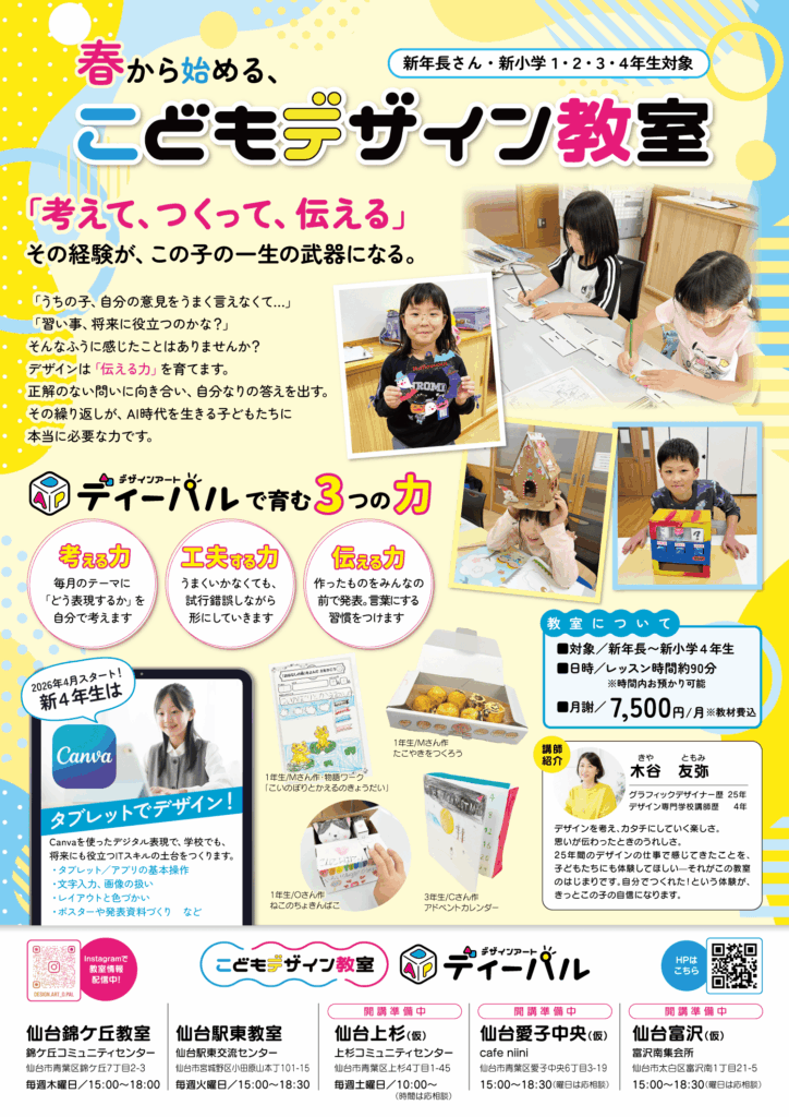 こどもデザイン教室ディーパル富沢教室では、2026年春の体験レッスンを開催します。